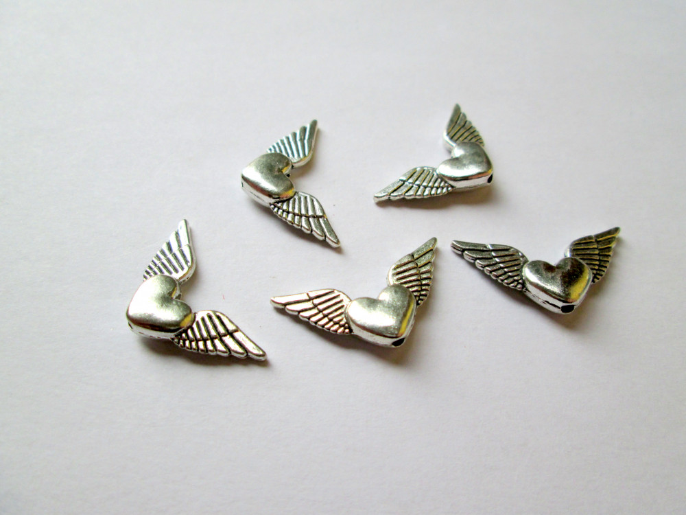 Angyalszárny fűzhető fémgyöngy - antik ezüst - 25x12 mm