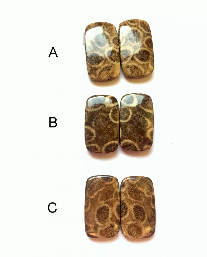 Barna korall fosszília kaboson - összeillő pár - méretek a leírásban