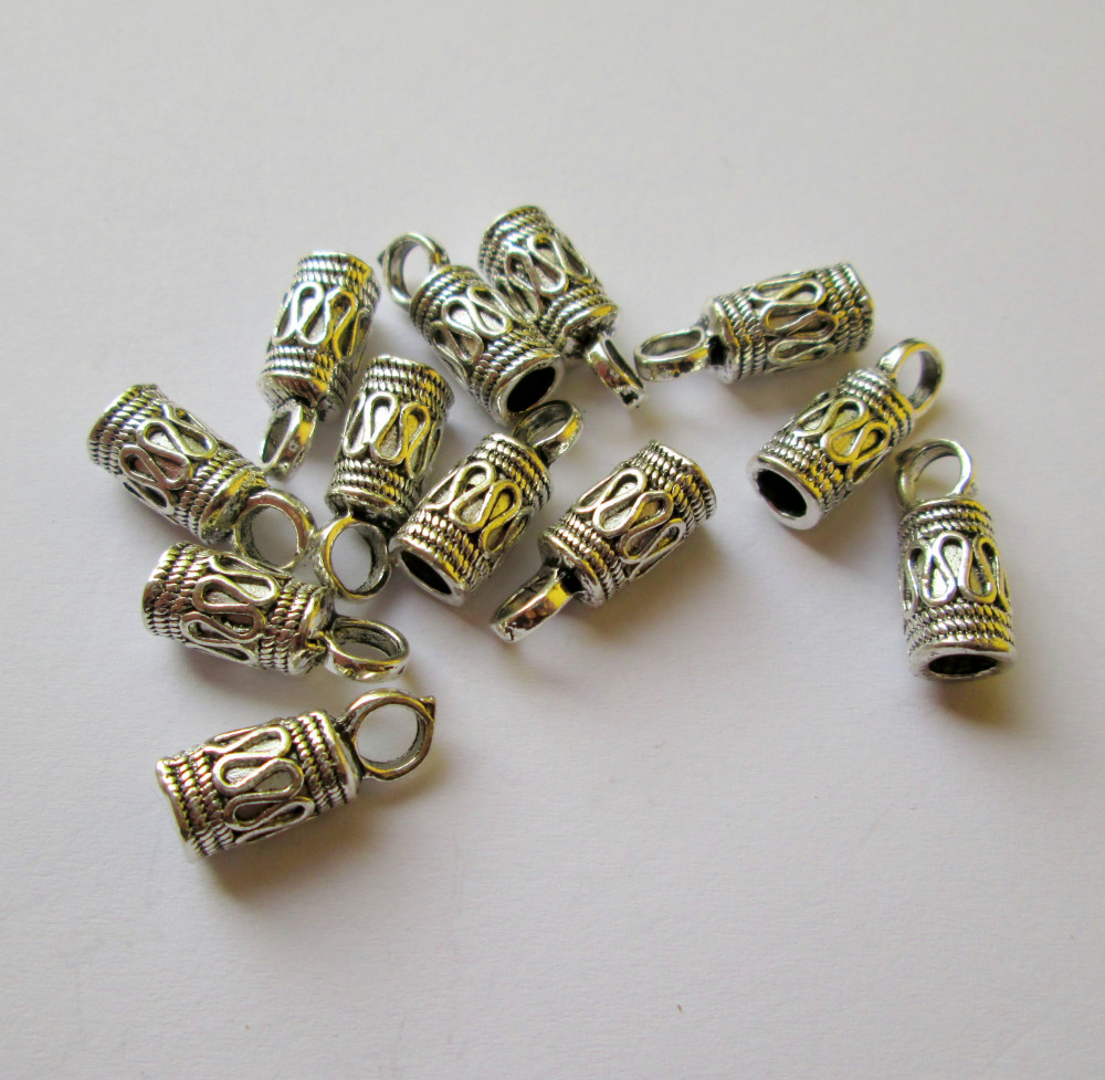 Bőrvég, gyöngykupak - 17x7 mm - antik ezüst
