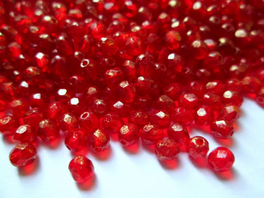 Cseh csiszolt gyöngy - 4 mm - Gold Marbled Siam Ruby - #GM90080