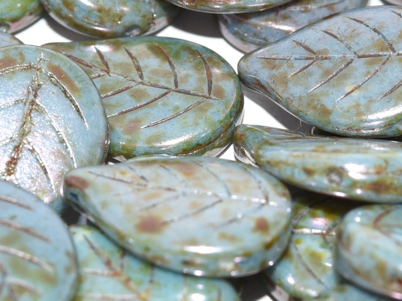 Cseh levél gyöngy 18x13 mm - Chalk White Blue Luster - #65431