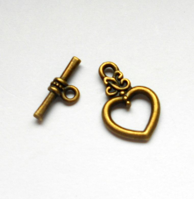 Szíves T kapocs - bronz 21*16 mm
