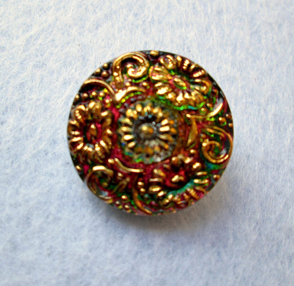 Handpainted vintage glass buttons from Bohemia. Beautiful patterns and iris colours - so unique - that you must have one.