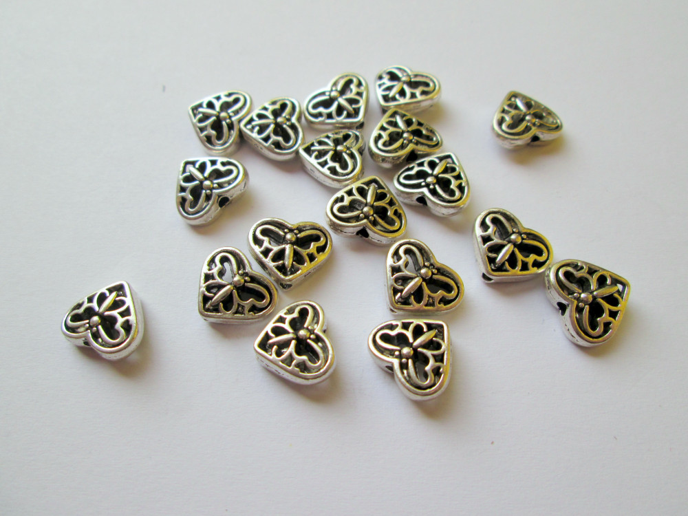Fémgyöngy szív - 12x11 mm - antik ezüst