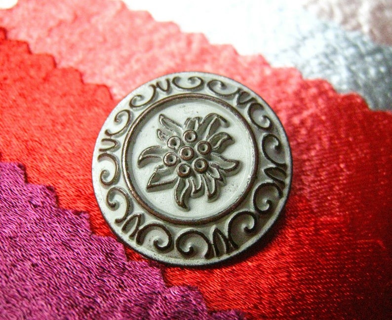 Antikolt hatású fémgomb gyöngyhímzéshez. Az akasztót lecsípve kabosonként használható, befoglalható.
