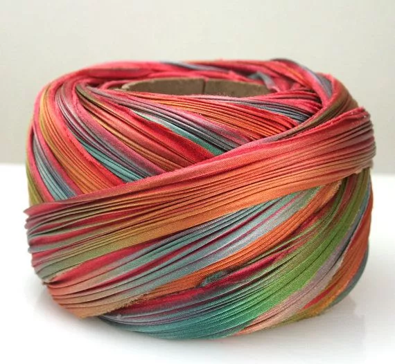 Shibori silk ribbon - feather -10 cm