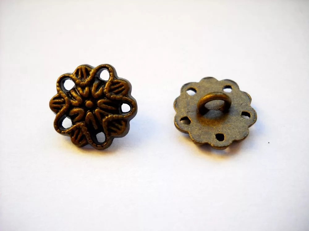 Metal shank button - antique finish 14 mm for jewelry making or clothing.