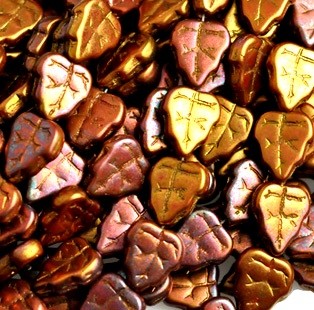 Cseh levélgyöngy - 10*8 mm - bronz írisz